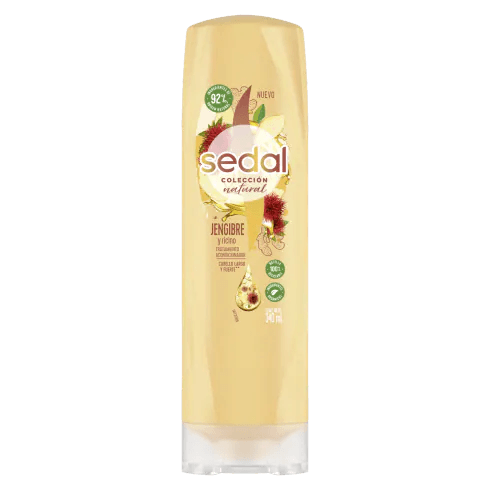 - Jengibre & Óleo de Ricino - Pelo largo y fuerte - 92% ingredientes de origen natural - Hidrata el cabello para hacerlo más resistente! - Probá toda la línea de Sedal Colección Natural, Jengibre y Ricino Nuestras fórmulas exclusivas están diseñadas cuidadosamente con 92% de ingredientes de origen natural, ingredientes orgánicos y con botellas 100% reciclables. Todo esto nos ayuda a reparar y nutrir profundamente tu pelo dejándolo fuerte y saludable mientras cuidamos el medioambiente.