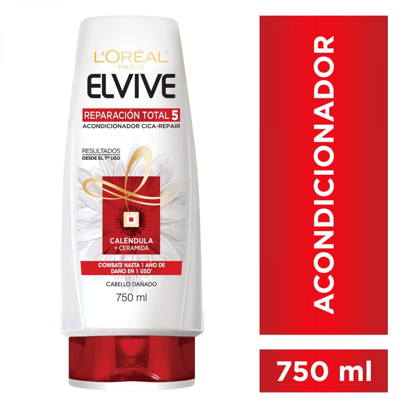 ¿Tu cabello está dañado? Nuestro Acondicionador Reparador, ahora con 11% de concentrado reparador con KERATINxs y sin sal°, instantáneamente repara, fortalece y protege la fibra capilar, para transformar el cabello dañado en un cabello sedoso y brillante. Elvive Reparación Total 5 para cabello dañadotiene como beneficio 1 SOLUCIÓN PARA REPARAR 5 SIGNOS DEL CABELLO DAÑADO: 1. RESEQUEDAD 2. FRAGILIDAD 3. DESHIDRATACIÓN 4. ASPEREZA 5. PUNTAS ABIERTAS. Aplicar en puntas y largos sobre el cabello mojado después del shampoo ELVIVE REPARACIÓN TOTAL 5, dejar actuar y enjuagar. Para un cabello más reparado y fortalecido, utilizar los otros productos de la línea ELVIVE REPARACIÓN TOTAL 5. Evítese el contacto con los ojos. En caso de contacto con los ojos, enjuague inmediatamente. Manténgase fuera del alcance de los niños. Si observa alguna reacción desfavorable suspenda su uso.