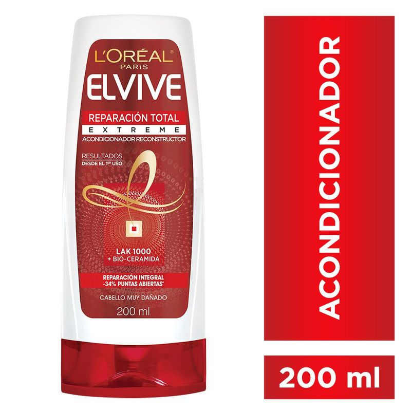 ¿Cabello muy dañado? Nuestro Acondicionador Reconstructor, con un concentrado reparador con KERATINxs, LAK 1000 y con efecto Anti-Sal°, transforma el cabello muy dañado. Elvive Reparación Total Extreme para cabello muy dañadotiene como beneficio: 1. Reconstruye el cabello desde la raíz hasta las puntas. Protege el cabello. Suaviza el cabello. Aplicar en puntas y largos sobre el cabello mojado después del shampoo ELVIVE REPARACIÓN TOTAL EXTREME, dejar actuar y enjuagar. Para un cabello más reparado y fortalecido, utilizar los otros productos de la línea ELVIVE REPARACIÓN TOTAL EXTREME. Evítese el contacto con los ojos. En caso de contacto con los ojos, enjuague inmediatamente. Manténgase fuera del alcance de los niños. Si observa alguna reacción desfavorable suspenda su uso.