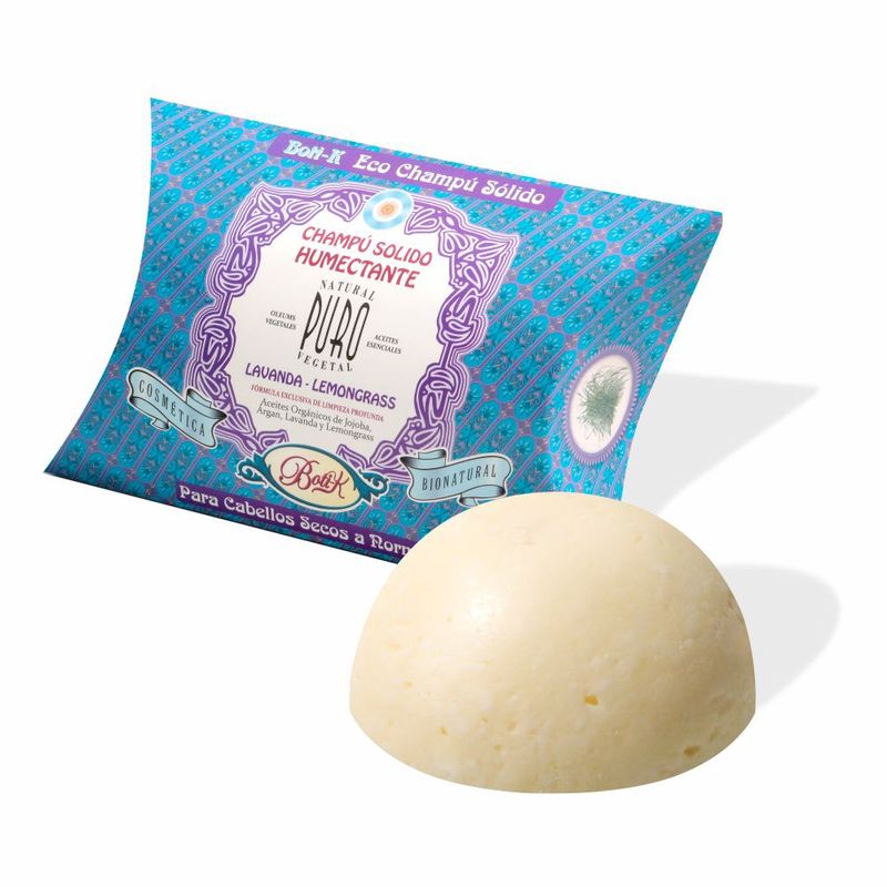 LIBRE DE SULFATOS PURO NATURAL Y VEGETAL Presentamos un nuevo concepto de belleza e higiene sostenible: Línea Capilar Eco Sólida. Presentación Ecológica de menor desperdicio y mayor durabilidad INDICADO PARA CABELLO NORMAL A SECO. CARACTERÍSTICAS:eco champú sólido de baja irritación y alto rendimiento, libre de conservantes. De aroma herbáceo relajante. PROPIEDADES: formulado con detersivos de origen vegetal. Enriquecido con aceites orgánicos de Jojoba, Argán y Rosa Mosqueta. Promueve una limpieza profunda, segura y efectiva de la raíz, epidermis y fibra capilar, fortaleciendo el cabello. Revitalizante y tonificante natural. Su fórmula con aceite esencial de Lavanda tiene un efecto relajante y calmante del cuero cabelludo a la vez que le brinda una hidratación profunda. Ayuda a fortalecer y prevenir la caída del cabello. | Sin derivados del petróleo · Sin sustancias de origen animal · Sin aditivos artificiales o de síntesis química · Sin fragancias artificiales · Sin gluten · Sin parabenos · Sin colorantes · Sin odoríferos |