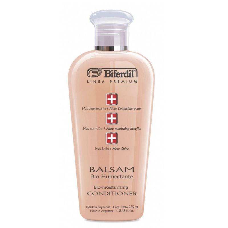 Balsam Bio-Humectante Posee alto poder desenredante y acondiciona profundamente el cabello dejandolo mucho mas docil y manejable. Enriquecido con un Complejo Multivitaminico Vegetal, aporta vitaminas A, B1, B2, B3, B6, C, E, F, y Provitaminas A y B5, de gran valor nutritivo para las fibras capilares.