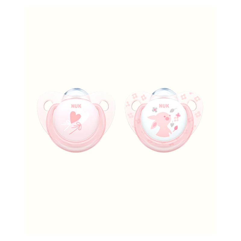 - Formato original NUK mejorado: basado en la forma del pezon materno al amamantar. - Cuello de la tetina mas delgado y angosto: reduce la presion sobre las mandibulas y los dientes - Tetina plana y parte inferior lisa: mas espacio para movimientos naturales de la lengua al succionar - Escudo bucal anatomico con boton plano para evitar marcas de presion cuando el bebe esta boca abajo o de costado, ideal para la hora de dormir y con un practico anillo - Disponible en 2 tamanos: 0-6m y 6-18m - Estuche doble apto para transporte y esterilizacion - Presentacion: 1 / 2 unidades