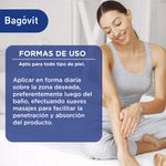 La Emulsión Nutritiva Humectante Bagóvit A es de textura fluida. Su fórmula hidro emulsionada permite que la Vitamina A penetre rápidamente, favoreciendo una placentera y suave aplicación en todo el cuerpo. Restituye la firmeza, vitalidad y luminosidad de la piel. Es hipoalergénica.