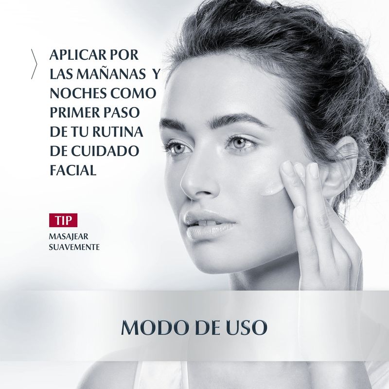 2) Aplicá en la mañana y en la noche masajeando suavemente sobre la piel bien limpia. No usar en el área de los ojos.