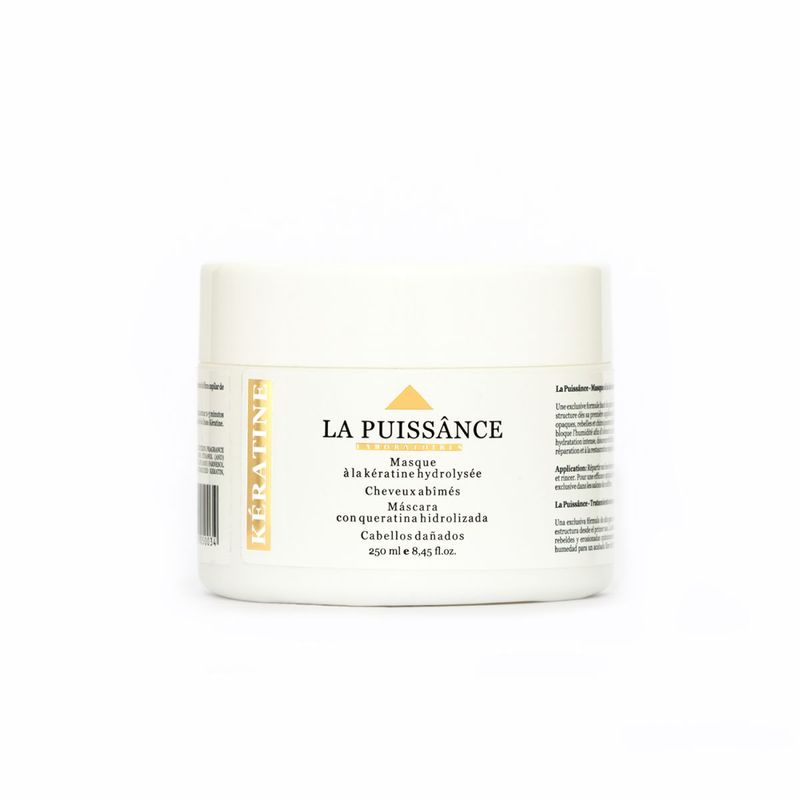 La Puissânce- Máscara de queratina hidrolizada Una exclusiva fórmula de alta gama especialmente creada para el cabello seco y dañado que favorece la transformación de su estructura desde el primer uso. La innovadora tecnología con activos reconstructores de La Puissânce suaviza las hebras opacas, rebeldes y erosionadas químicamente gracias al polímero catiónico, un agente de cuidado de alta precisión, que bloquea la humedad para un acabado libre de frizz. Control del cabello con absoluto movimiento, hidratación intensa, sedosidad y brillo desde la raíz hasta la punta. Su alto contenido de queratina hidrolizada ayuda a reparar y restaurar rápidamente la fibra capilar de adentro hacia afuera, con resultados extraordinarios. MODO DE USO: Distribuir sobre el cabello mojado cubriendo de medios a puntas. Masajear suavemente. Dejar actuar 2-3 minutos y aclarar ligeramente. Para su óptima eficacia se recomienda su utilización en combinación con los demás productos de la línea Kératine Professional. Exclusivo de salón.