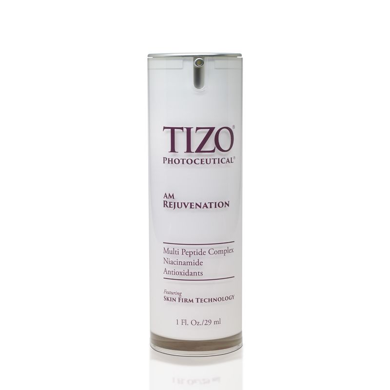 TiZO Photoceutical AM Rejuvenation está formulado con péptidos, niacinamida, potentes antioxidantes (vitaminas C y E) y selenio. TiZO AM Rejuvenation es perfecto para el uso diario, ya que deja la piel con una sensación extremadamente suave, revitalizada y con un aspecto saludable que minimiza la apariencia de los poros, las líneas finas y las arrugas. El complejo de péptidos ayuda a suavizar las líneas finas y las arrugas para conseguir una piel más joven. Ilumina y mantiene un tono de piel uniforme. Los antioxidantes y los ingredientes antiglicación reducen los efectos dañinos de las especies reactivas del oxígeno. Indicaciones: Después de limpiar y preparar la piel con TiZO Espuma Limpiadora, aplícala en la cara, el cuello y el escote.
