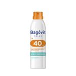 Bagóvit Solar en Spray Continuo con Factor de Protección Solar 40 es ideal para pieles muy sensibles a las quemaduras solares. Enriquecido con Vitamina E, antioxidante que protege las estructuras de la piel contribuyendo a reducir el fotoenvejecimiento y Aloe Vera, con efecto calmante y refrescante. El sistema de spray continuo multiposición 360° permite una fácil y rápida aplicación y gracias a su textura ultraliviana se esparce y se absorbe de manera inmediata sobre la piel. Amigable con el medio ambiente: este envase es inofensivo para la capa de ozono, funciona con tecnología exclusiva de aire comprimido. Es hipoalergénico y resistente al agua.