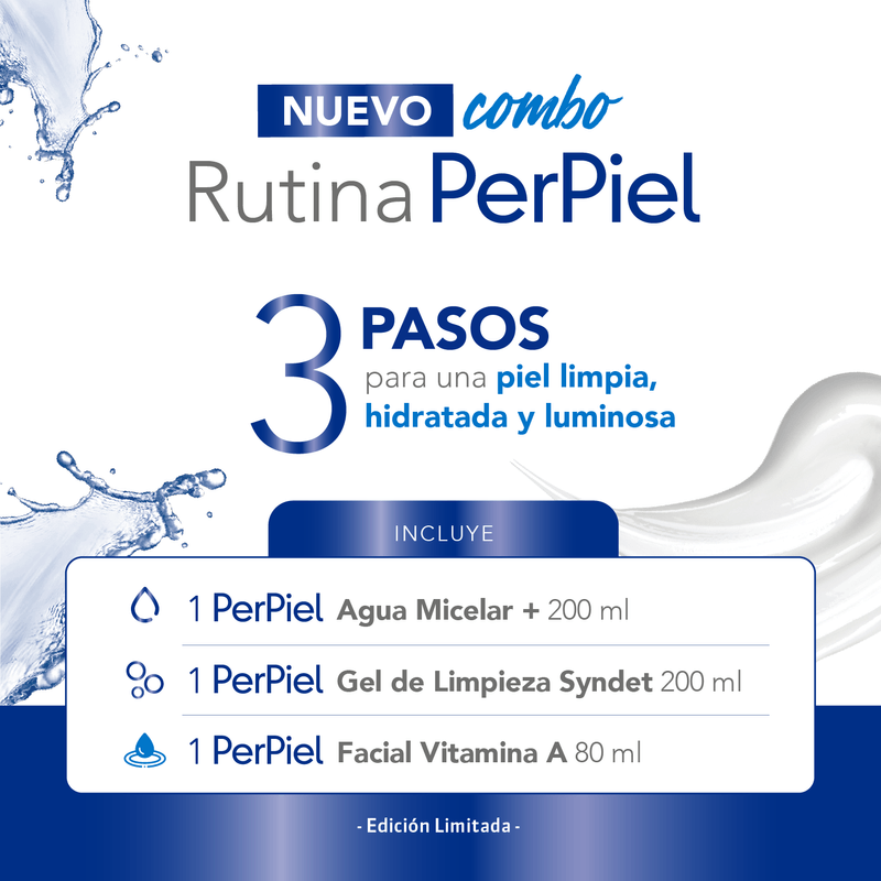 PERPIEL AGUA MICELAR 200 ML + PERPIEL GEL DE LIMPIEZA SYNDET 200 ML + PERPIEL EMULSION FACIAL A X 80 ML