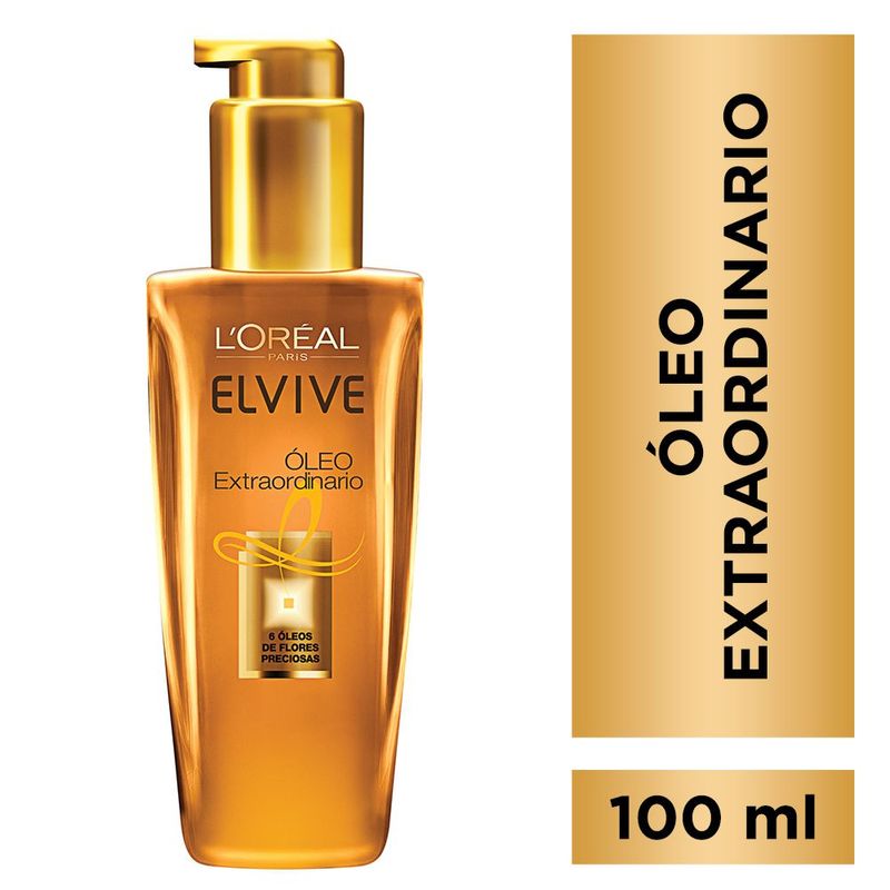 Una textura increíble, ligera, alquimia única de 6 extractos de óleos de flores preciosas, que logra una metamorfosis en cualquier tipo de cabello. Elvive Óleo Extraordinario Nutrición Universal para todo tipo de cabellotiene como beneficio: 1- Dosis exacta de nutrición desde la raíz. 2- Suavidad infinita. Brillo excepcional. 3- Resultados desde el primer uso . Aplicar 3 a 4 presiones en todo el cabello mojado o seco. Antes del shampoo para nutrir intensamente. Antes del brushing para proteger y suavizar. Como toque final para dar brillo y acción anti-frizz.