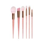 6 brochas Glitter libres de crueldad animal / Apto vegano / Más seguros en personas alérgicas y aptos para pieles sensibles / Más fáciles de limpiar / Óptimos para repeler las bacterias y la suciedad / No perderán fibras de forma constante. Contiene: Brocha Glitter Polvo- Pelo sintético: Brocha para aplicar maquillaje en polvo de forma natural. Las cerdas de fibra óptica pueden utilizarse para lustrar, satinar y fijar. Brocha Glitter Base-Pelo sintético: Brocha de corte transversal, que permite adaptarse a los distintos contornos del rostro. Dependiendo el uso de su ángulo modifica su funcionalidad, esculpir, retocar y definir. Brocha Glitter Iluminador-Pelo sintético: para resaltar zonas específicas del rostro: pómulos, puente de la nariz, arco de cupido o escote. Su diseño cónico y semi compacto le permite ser utilizado para realizar contouring y strobing. Pincel Glitter blender de ojos- Pelo sintético: Brocha esencial para aplicar, mezclar y/o difuminar pigmentos. Su forma redondeada permite adaptarse al ángulo del ojo y definir el make up. Brocha Glitter sombreador de Ojos-Pelo sintético: Ayuda a difuminar y mezclar distintos tonos de pigmentos. Ideal para definir el marco externo del ojo, aunque también se puede utilizar en el marco interno. Brocha Glitter Delineador-Pelo sintético: se ajusta perfectamente a lo largo de la línea de las pestañas y las cerdas sintéticas en ángulo proporcionan la máxima precisión de línea en todo momento. Pincel de pelo sintético/fibra óptica. Fascino tip: Ideal para delineado, perfilado y relleno con cejas.