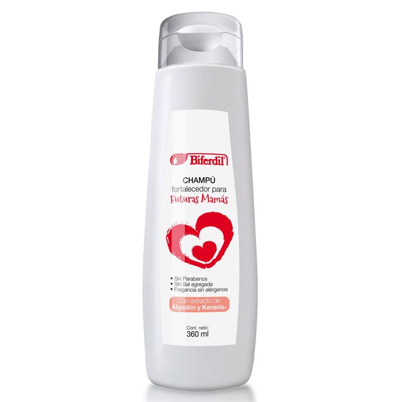 Champu Fortalecedor Biferdil Para Futuras Mamas Durante el embarazo, el cuerpo experimenta cambios fisicos y hormonales que nos preparan para la llegada del bebe a nuestras vidas. Desde Biferdil observamos la necesidad de la mujer de poder continuar con sus rutinas de cuidado y belleza diarias con productos especificos para embarazadas. Por eso desarrollo la Linea Maternidad ideal para cuidar el cabello durante los 9 meses de gestacion y posterior al nacimiento. El Extracto de Algodon brinda hidratacion y sedosisdad, mientras que el Keravis, complejo proetico, ayuda a fortificar la estructura del foliculo capilar y a evitar la rotura de las fibras gracias a sus principios activos seleccionados especialmente para las necesidades del cabello durante el periodo gestacional.