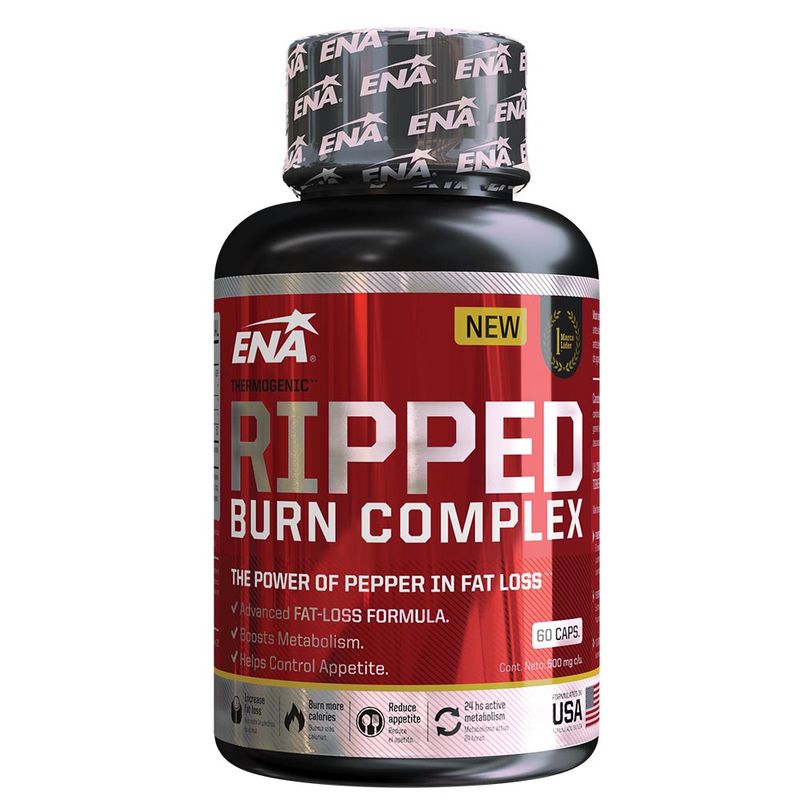 Ripped Burn Complex es un suplemento dietario que ayuda a bajar tu peso corporal. Mantiene el gasto calorico elevado durante todo el dia, aumenta la perdida de grasas, quema mas calorias y reduce el apetito.