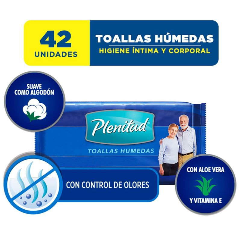 Toallas humedecidas destinadas a la higiene intima y corporal del cuerpo adulto. Tamano ideal para la higiene corporal del adulto, fragancia suave con aloe vera y vitamina E. Resistente y mas suave, con sistema neutralizador de olores.