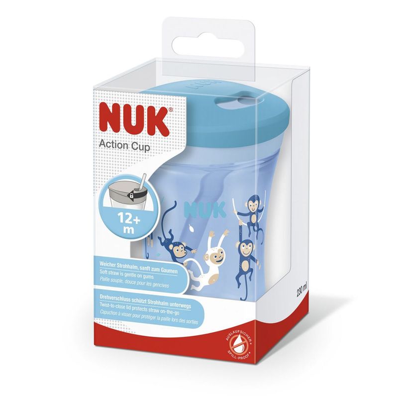 El vaso NUK Action acompaña al pequeño a partir de los 12 meses cuando ya está más activo y el movimiento y la acción toman protagonismo. El sorbete suave es flexible y delicado para el paladar y las encías. Gracias a la práctica tapa enroscable, desaparece dentro con un giro. Para transportarlo, el sorbete desaparece con un giro dentro de la tapa y mantiene todo seco y limpio. Este vaso también tiene una válvula antiderrame que permite beber sin problemas.