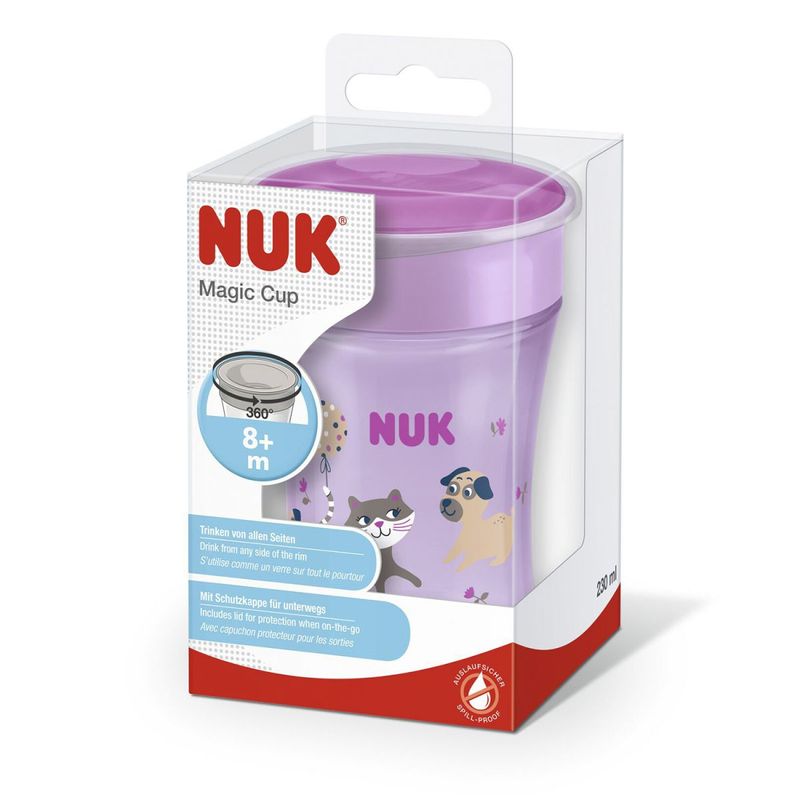 Vaso Evolution NUK Mini Magic Cup - Borde de 360° que se puede usar de todos lados - Con sello de silicona, anti-derrame - Con tapa protectora para traslados - Adecuado para bebés a partir de los 8 meses de edad - Capacidad 230 ml - Fabricado en material de alta calidad (PP), libre de BPA