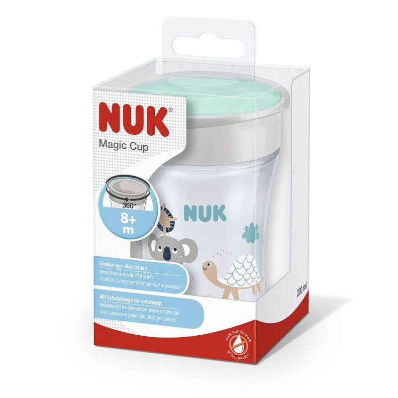 Vaso Evolution NUK Mini Magic Cup - Borde de 360° que se puede usar de todos lados - Con sello de silicona, anti-derrame - Con tapa protectora para traslados - Adecuado para bebés a partir de los 8 meses de edad - Capacidad 230 ml - Fabricado en material de alta calidad (PP), libre de BPA